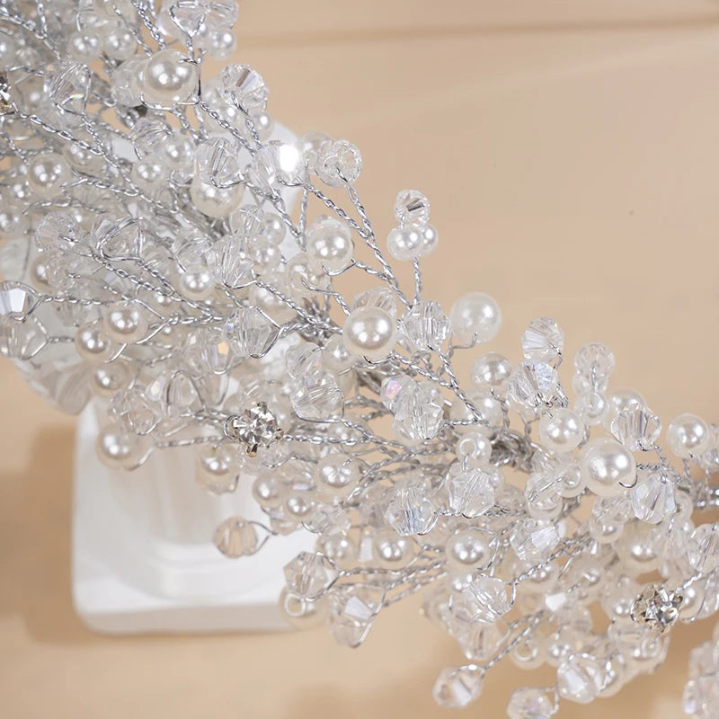 Moonlight Crown captures the soft glow of moonlight with its shimmering crystals and delicate pearl accents.